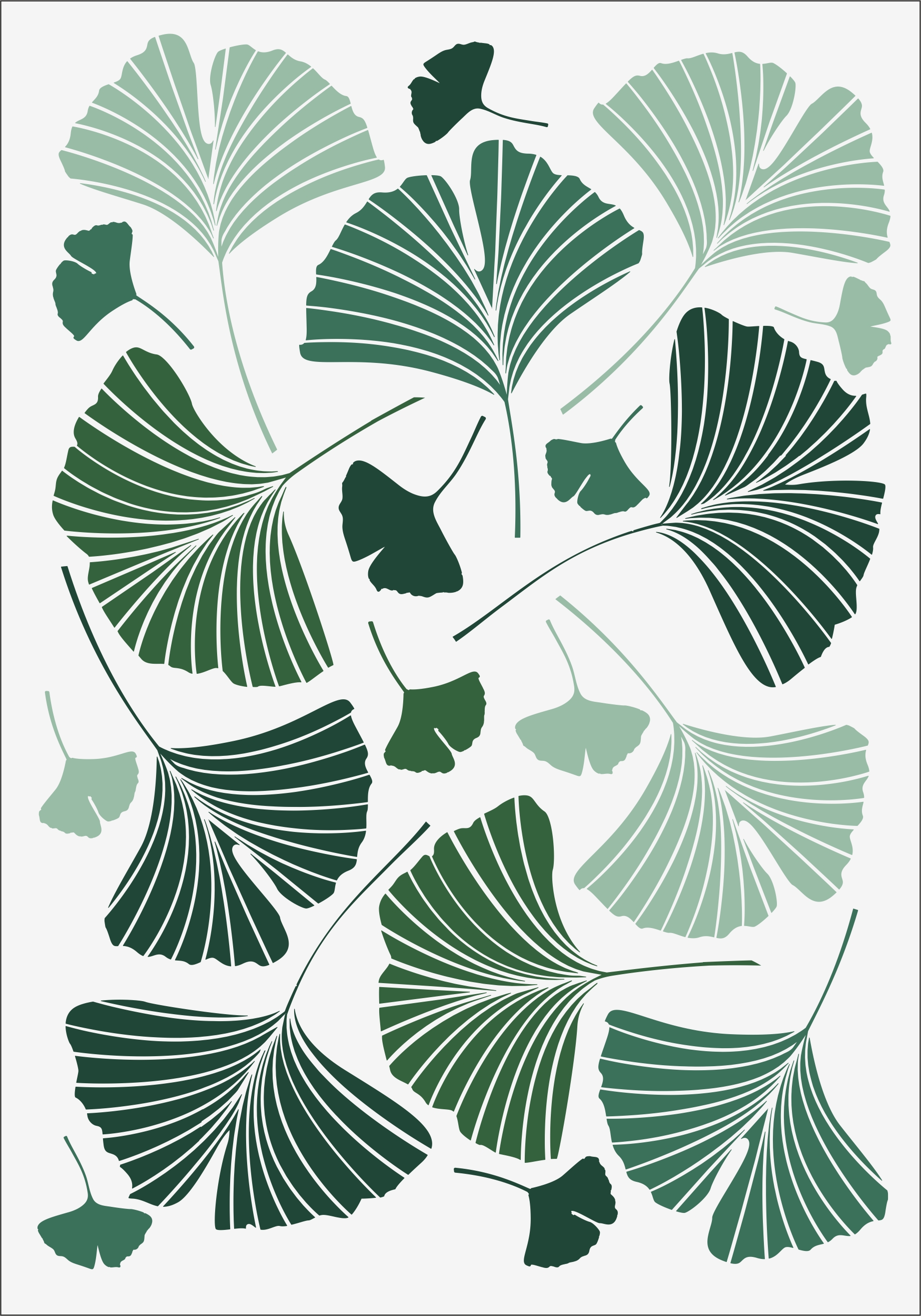 3D-Rub On Aufkleber - Ginko Blätter Grün - RB3-022 Größe: ca. A5 (200x140mm)