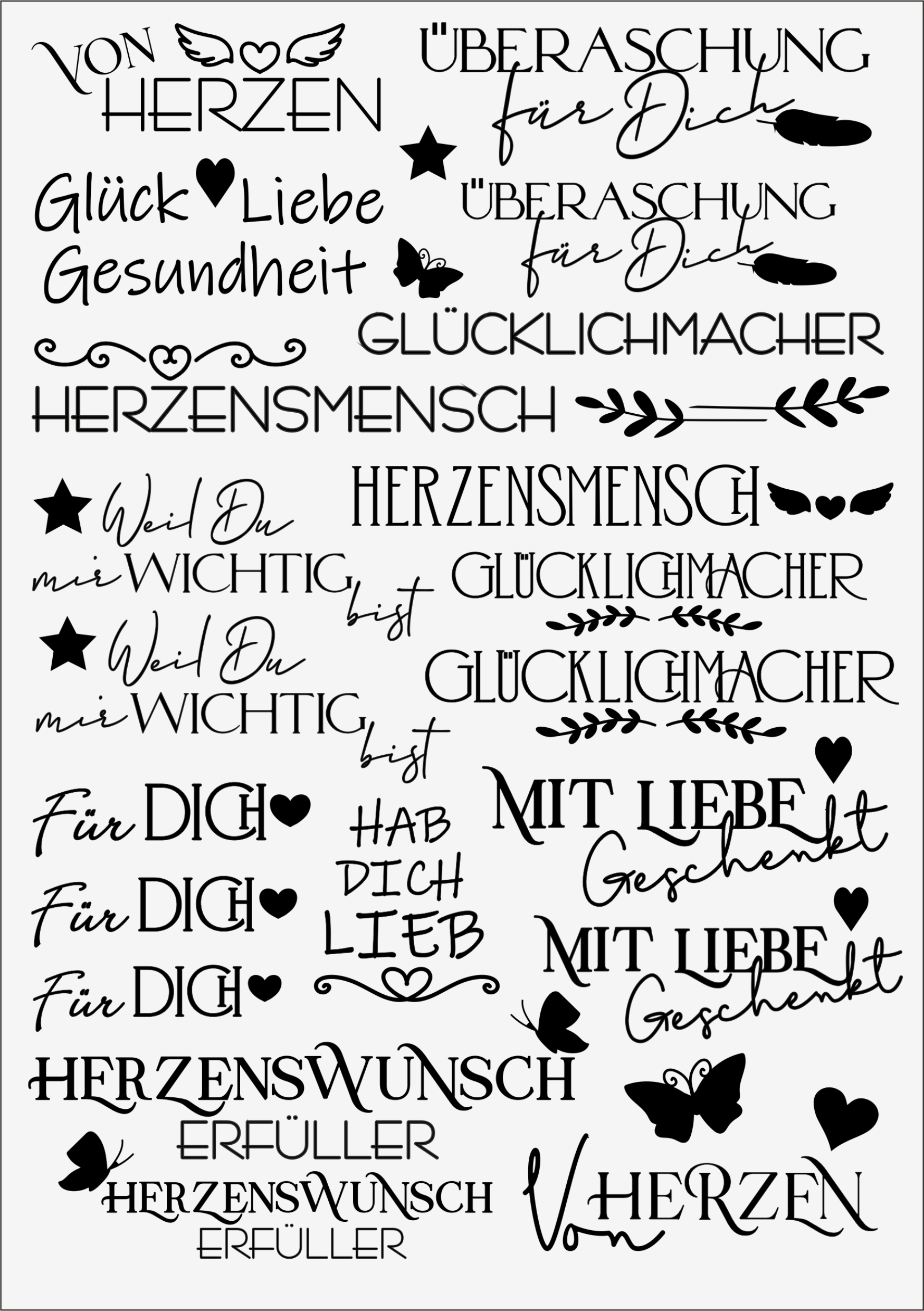 3D-Rub On Aufkleber - Wünsche - RB3-071 Größe: ca. A5 (200x140mm)