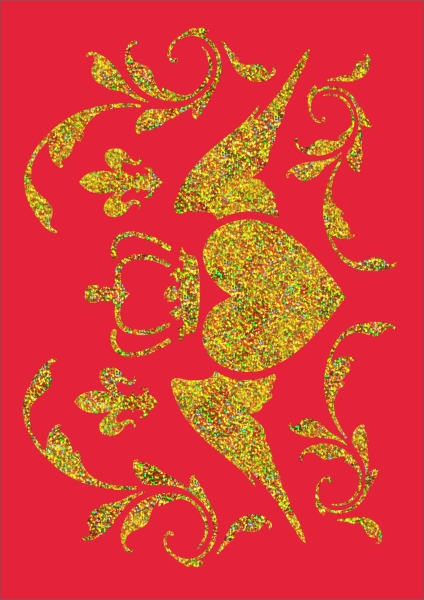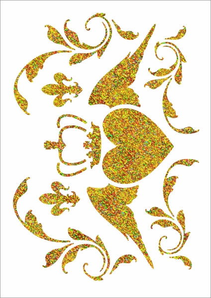 Herz-Kronen Ornament in Hologramm Gold, Folien Bügelmotiv in A5