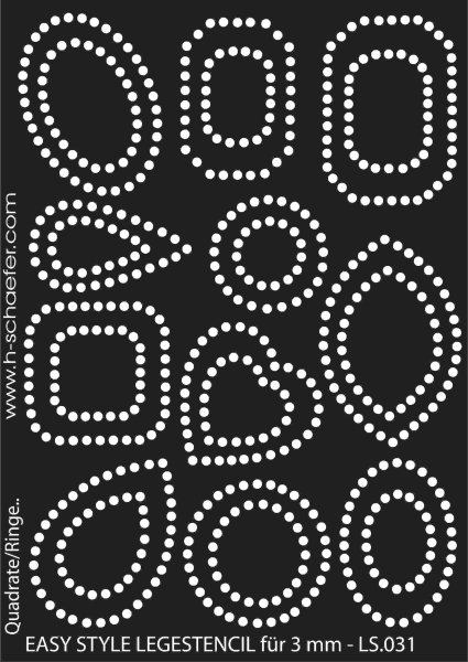 LS31 A5 Easy Style Wisch Schablone, Motiv Quadrate, Ringe für 3mm Kristalle, Chatons...