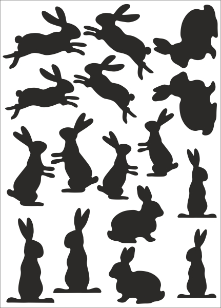 Satinier Schablone/ Aufkleber - 16 Hasen in Schwarz A5
