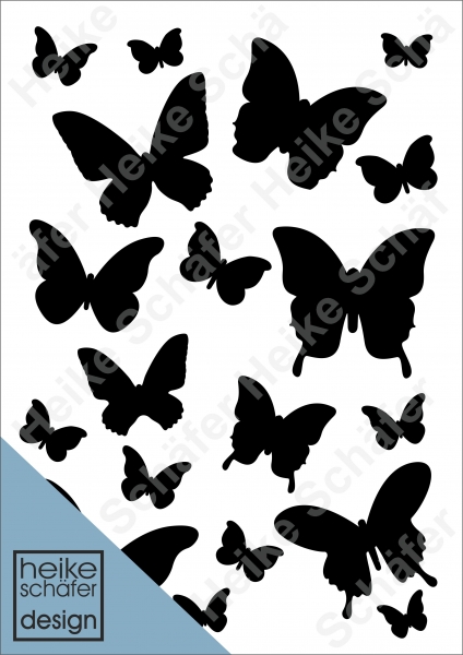 Satinier Schablone/ Aufkleber - 19 Schmetterlinge in Schwarz A5