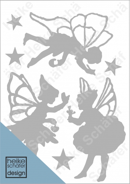 Satinier Schablone/ Aufkleber - Elfen in Silber A5