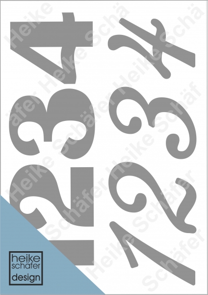 Satinier Schablone/ Aufkleber - Zahlen in Silber A5