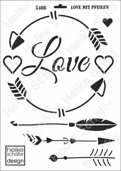Schablone-Stencil A3 030-5408 Love mit Pfeilen
