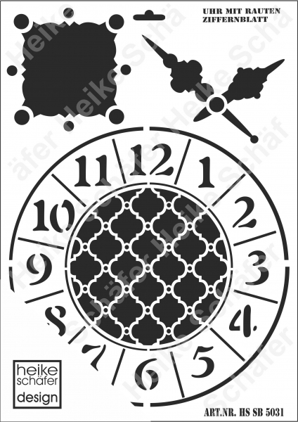 Schablone-Stencil A3 160-5031 Uhr mit Rauten Ziffernblatt