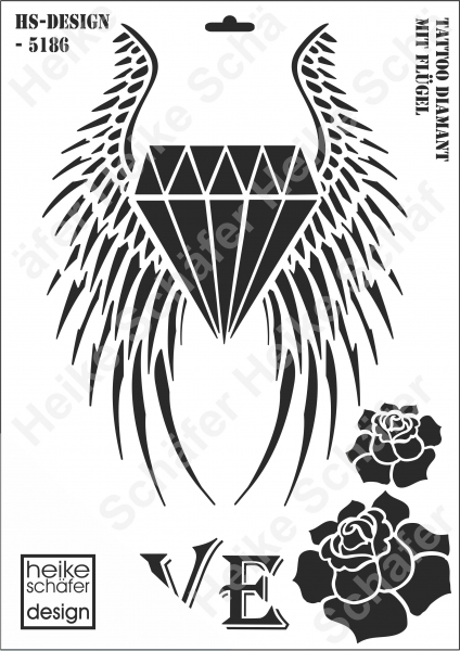 Schablone-Stencil A3 279-5186 Tattoo Diamant mit Flügel